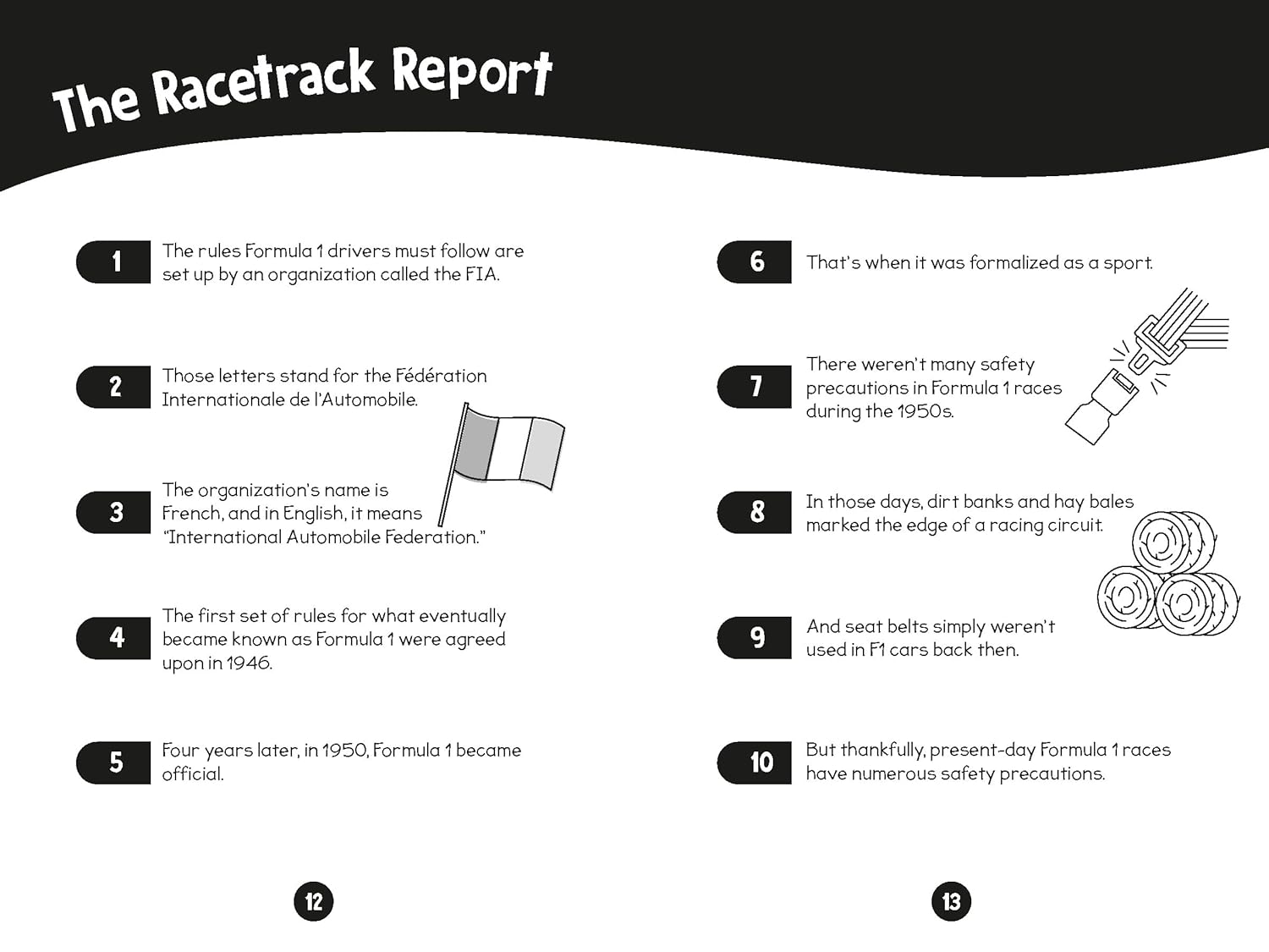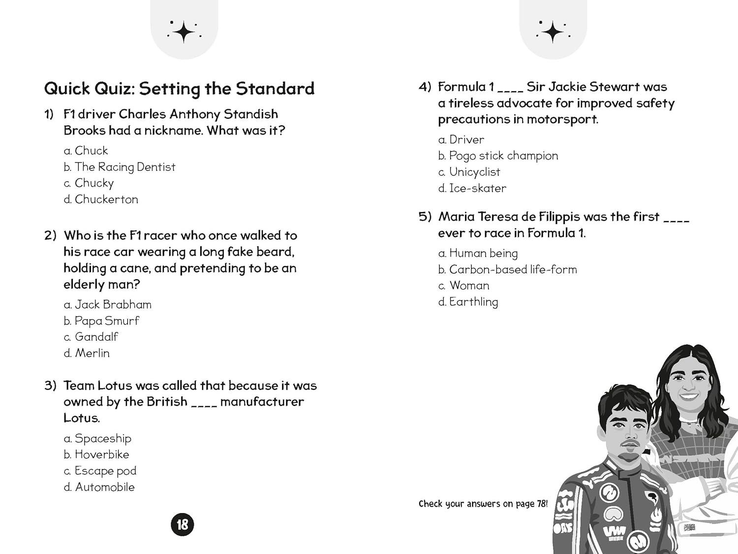 Packed with fun facts, quick quizzes, and bonus pages for journaling, this is a must-have for anyone wanting to know more about some of F1's most famous drivers, including Charles Leclerc, Jamie Chadwick, Lella Lombardi, Lewis Hamilton, Marta Garcìa, and Max Verstappen.