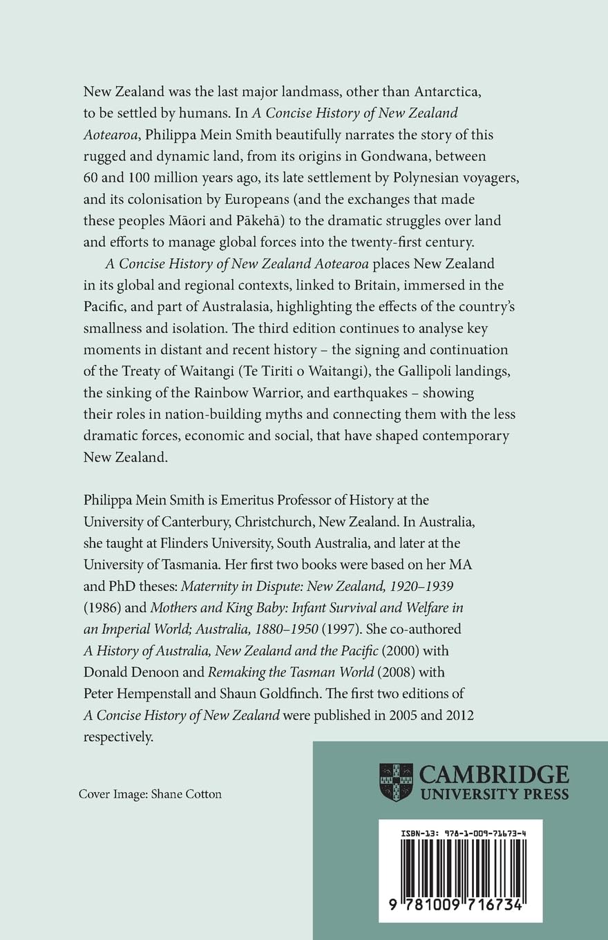 In A Concise History of New Zealand Aotearoa, Philippa Mein Smith beautifully narrates the story of this rugged and dynamic land, from its origins in Gondwana, between 60 and 100 million years ago, its late settlement by Polynesian voyagers, and its colonisation by Europeans (and the exchanges that made these peoples Maori and Pakeha) to the dramatic struggles over land and efforts to manage global forces into the twenty-first century.