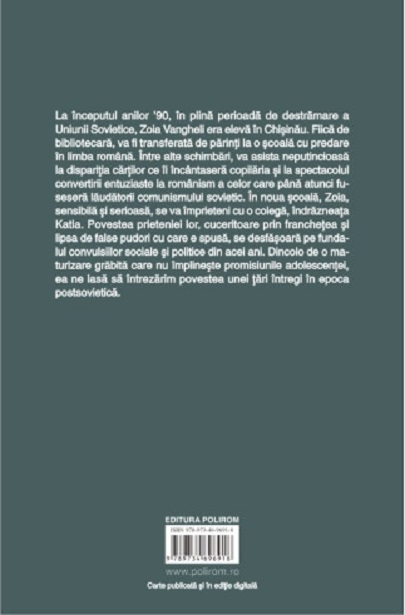 La începutul anilor ’90, în plină perioadă de destrămare a Uniunii Sovietice, Zoia Vangheli era elevă în Chișinău. Fiică de bibliotecară, va fi transferată de părinți la o școală cu predare în limba română. Între alte schimbări, va asista neputincioasă la dispariția cărților ce îi încântaseră copilăria și la spectacolul convertirii entuziaste la românism a celor care până atunci fuseseră lăudătorii comunismului sovietic.
