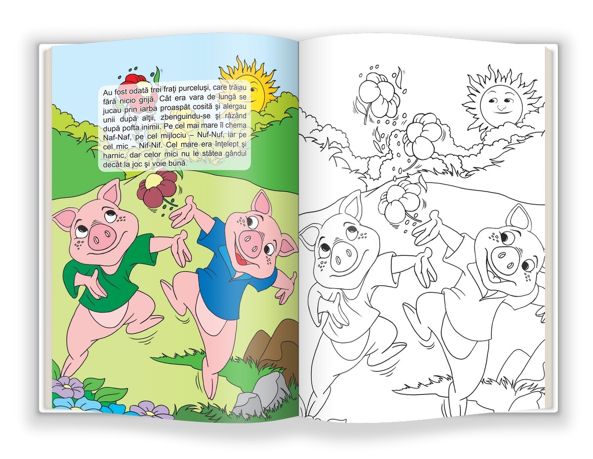 Aventurile incredibile ale Celor trei purceluși se dezvăluie într-o nouă carte de colorat cu poveste.