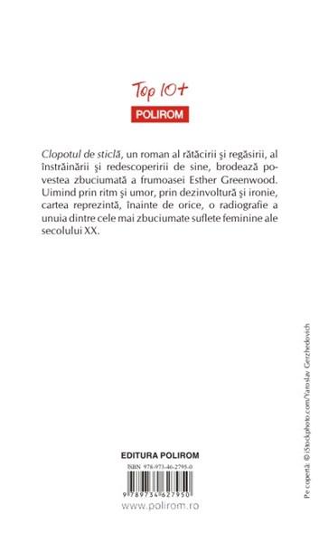 Clopotul de sticla, un roman al ratacirii si regasirii, al instrainarii si redescoperirii de sine, brodeaza povestea zbuciumata a frumoasei Esther Greenwood. Uimind prin ritm si umor, prin dezinvoltura si ironie, cartea reprezinta, inainte de orice, o radiografie a unuia dintre cele mai zbuciumate suflete feminine ale secolului XX.