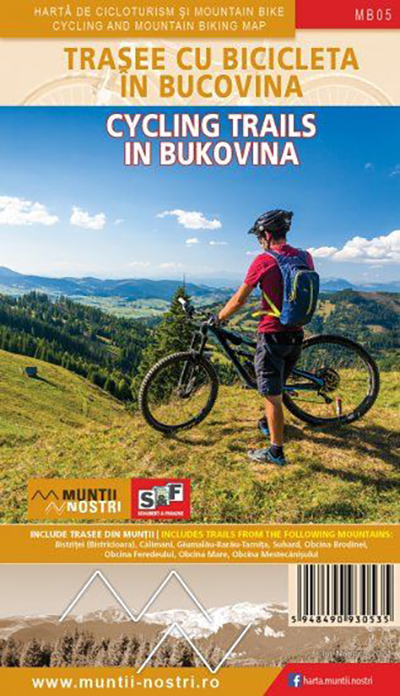 Harta de cicloturism a Trasee cu Bicicleta in Bucovina poarta indicativul MB05, ceea ce-nseamna ca este al cincilea numar din seria „Harti Cicloturistice”.