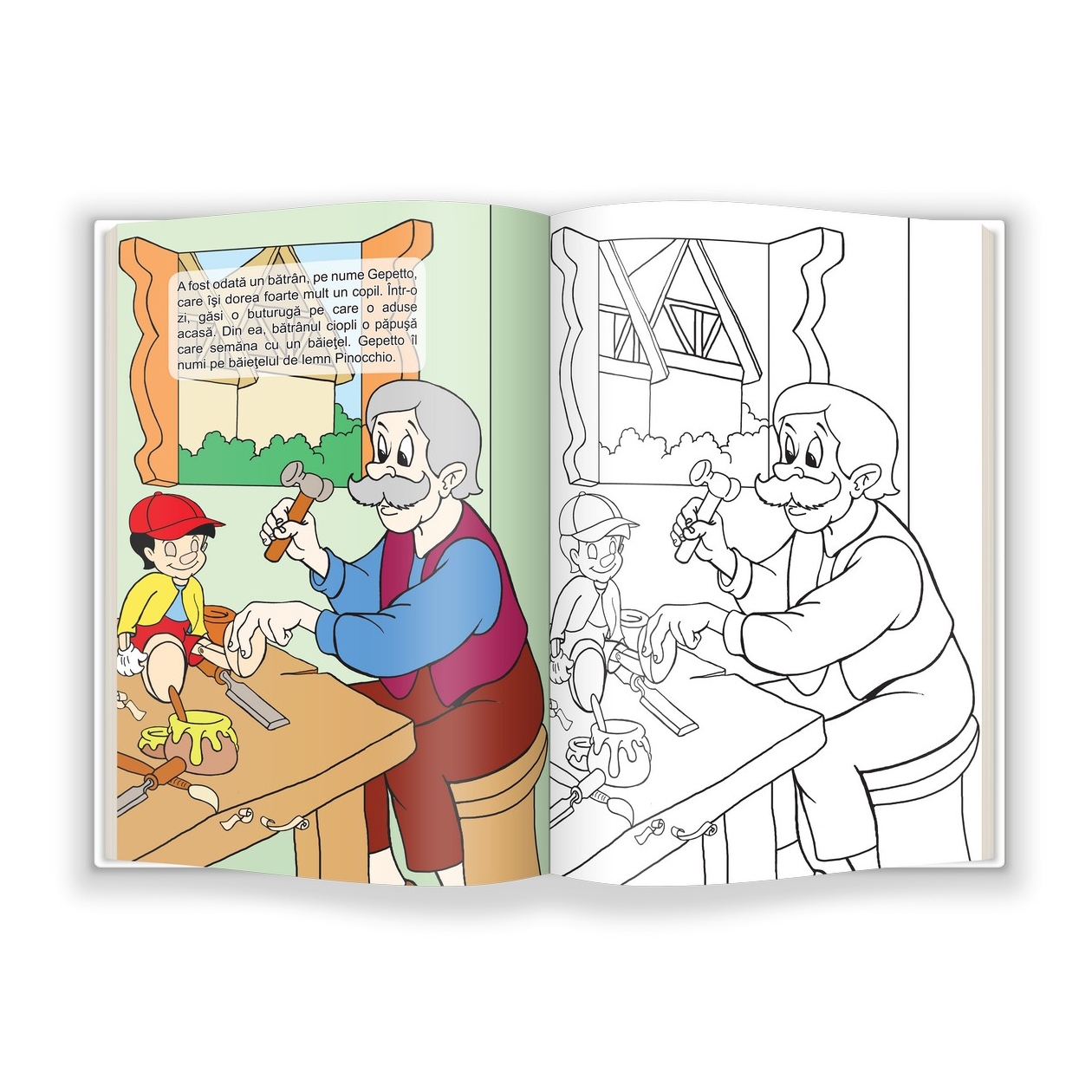 Extraordinarele aventuri ale lui Pinocchio, poznașul băiețel de lemn, se dezvăluie într-o nouă carte de colorat cu poveste.