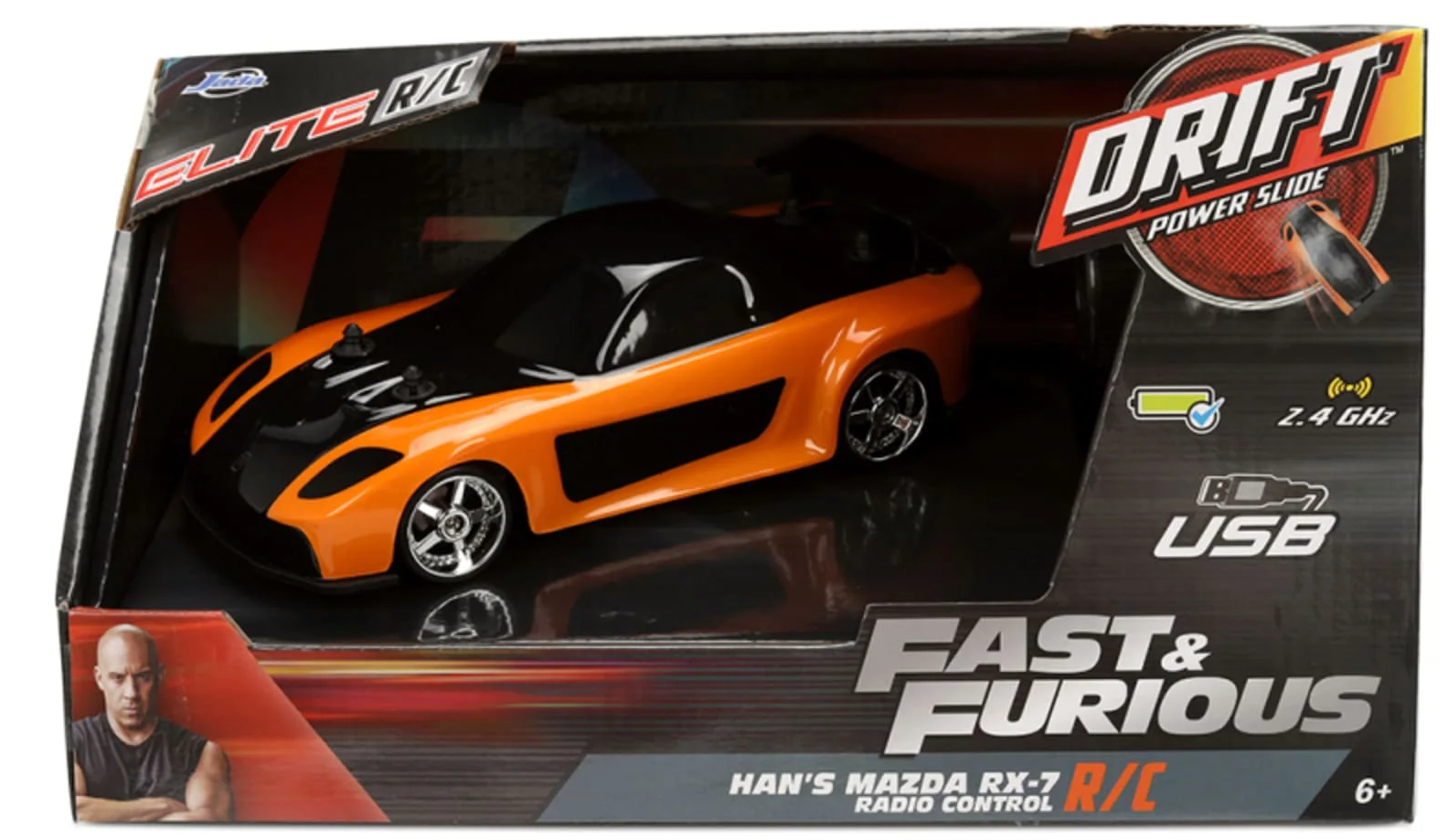 Adu la viață fiorul francizei Fast & Furious cu mașina RC Drift Jada Mazda RX-7 Widebody din 1995, o replică uimitoare la scara 1:24 care surprinde aspectul iconic și acțiunea de mare viteză a legendarei mașini a lui Han.