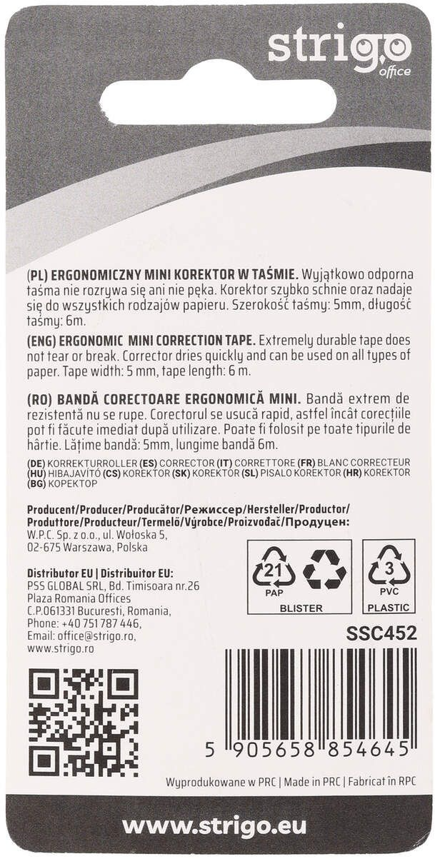 Este ușor să corectezi cu această bandă corectoare mini de la Strigo, care se usucă rapid și se adaptează oricărui tip de hârtie!