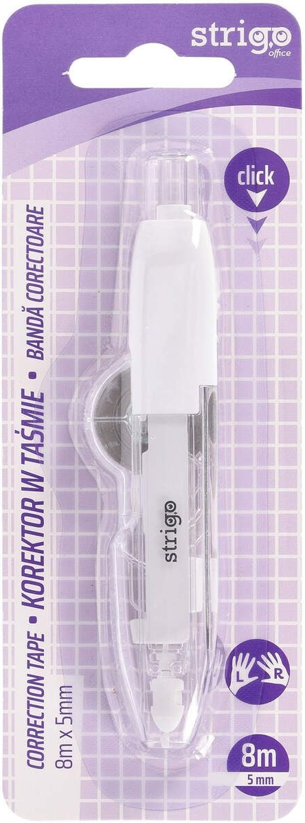 Este ușor să corectezi cu această bandă corectoare de la Strigo, sub formă de pix cu mecanism, care se usucă rapid și se adaptează oricărui tip de hârtie!