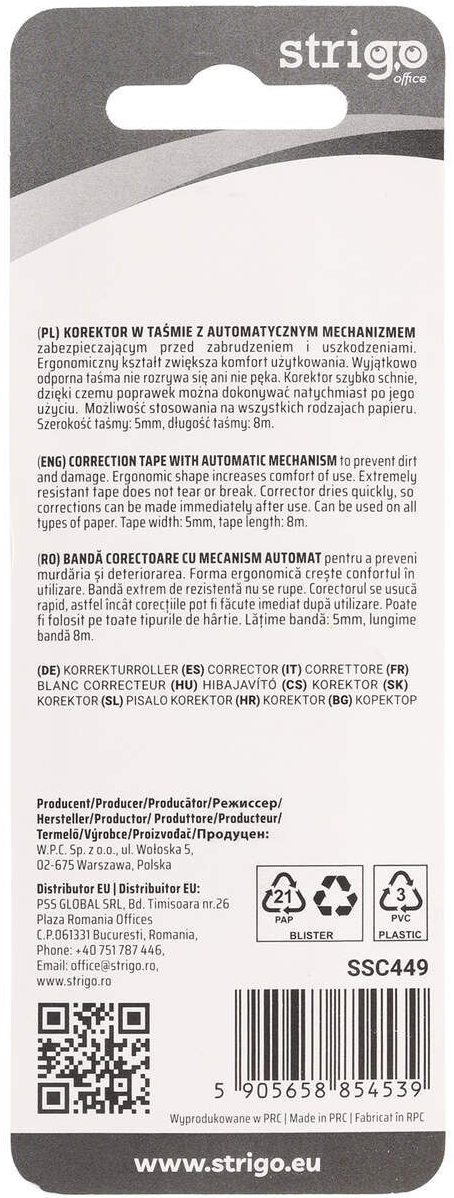 Este ușor să corectezi cu această bandă corectoare de la Strigo, sub formă de pix cu mecanism, care se usucă rapid și se adaptează oricărui tip de hârtie!