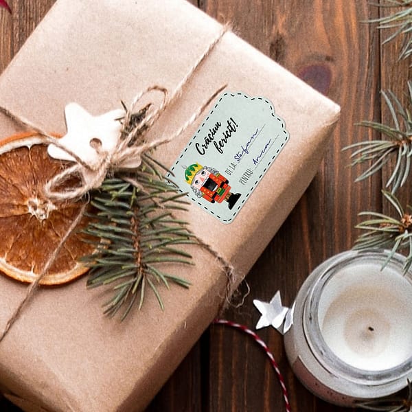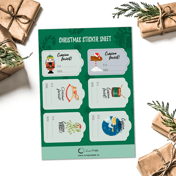 Set de 6 etichete autocolante care asteapta sa fie lipite pe cadourile de Craciun ale celor dragi.