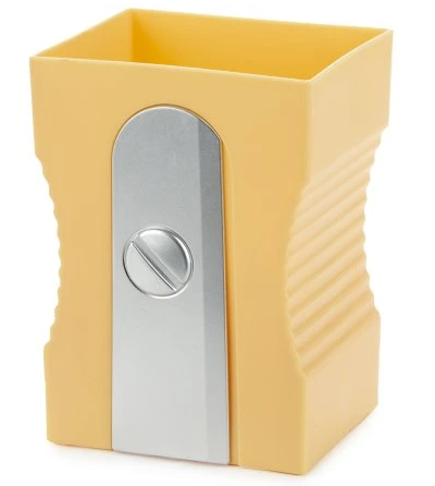 • Formă originală – suportul seamănă cu o ascuțitoare clasică, adăugând o notă jucăușă spațiului de lucru