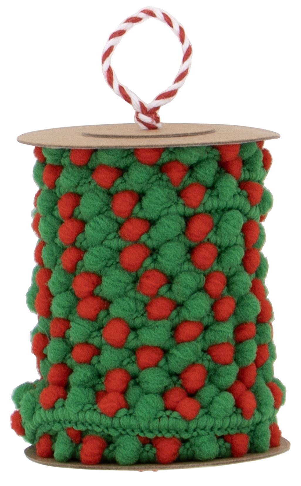Panglica decorativa pentru cadouri - Gift Dressing Pom Pom Ribbon Spool Red/Green