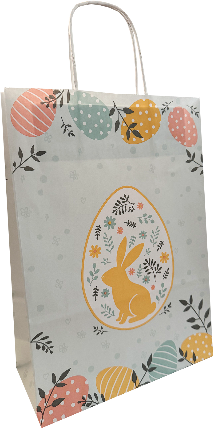 Punga de cadou - Paste (medie)Dimensiune: 31x22x10 cmMaterial: hartie natur 100 g/mp, manere din hartie rasucita