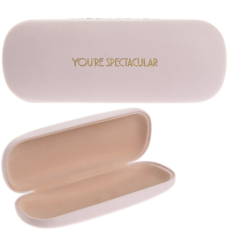 Etui pentru ochelari elegant purtând diverse mesaje.