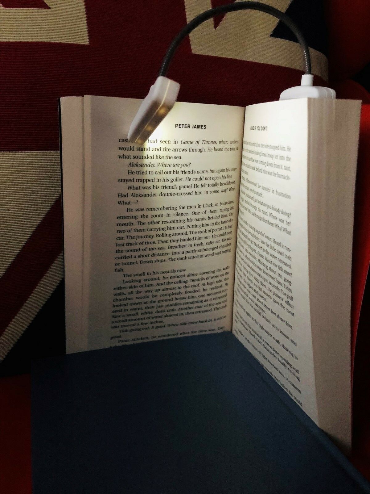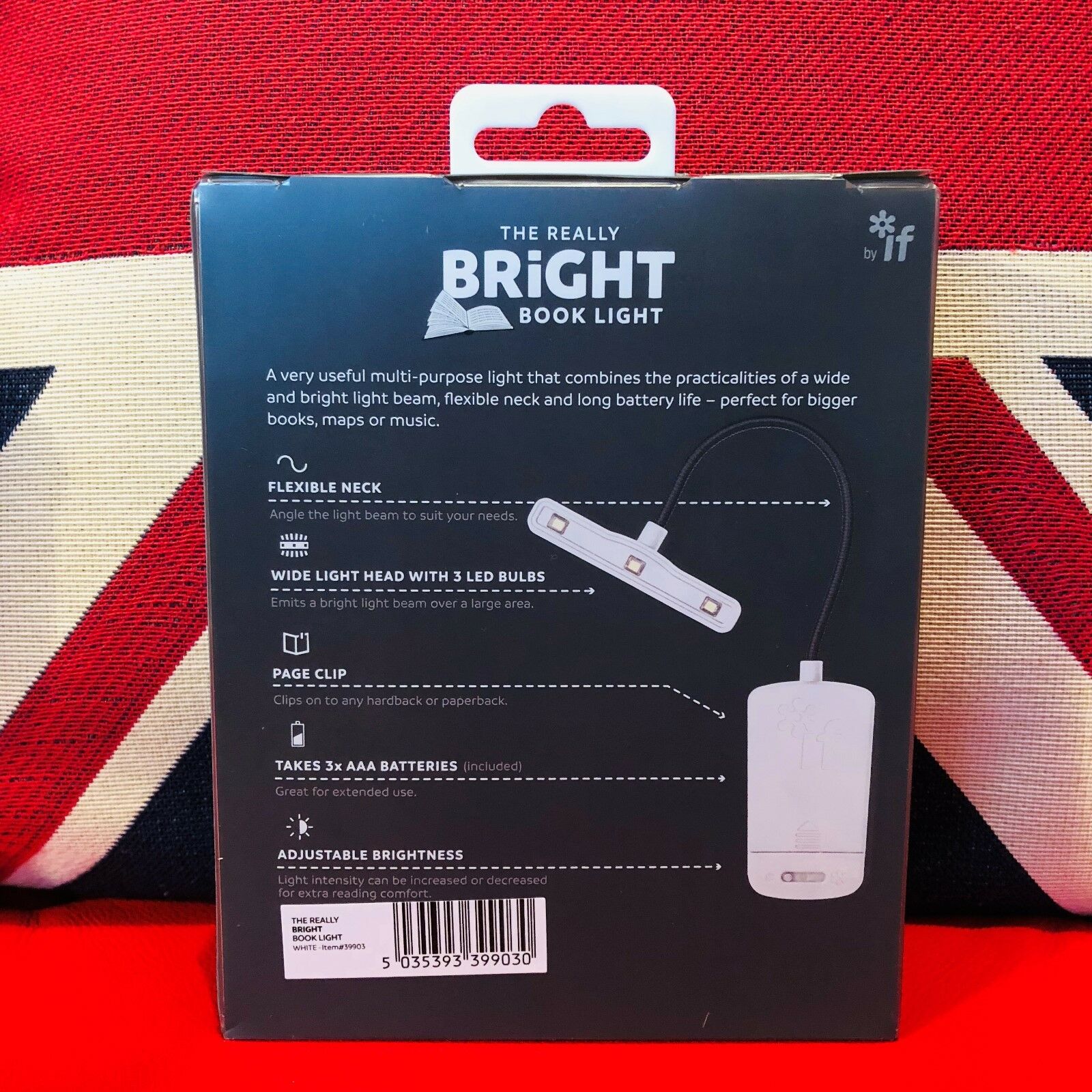 Această lampă pentru citit are 3 trepte de lumină, gât flexibil, se poate prinde de orice carte și se găsește într-o gamă variată de culori.