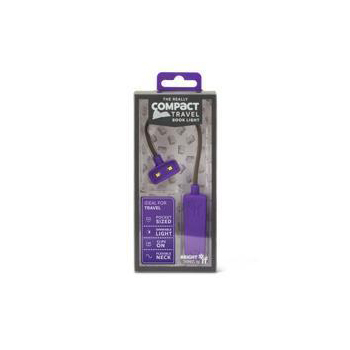 Lampa pentru citit portabila, de culoare mov, se prinde cu usurinta de orice carte.