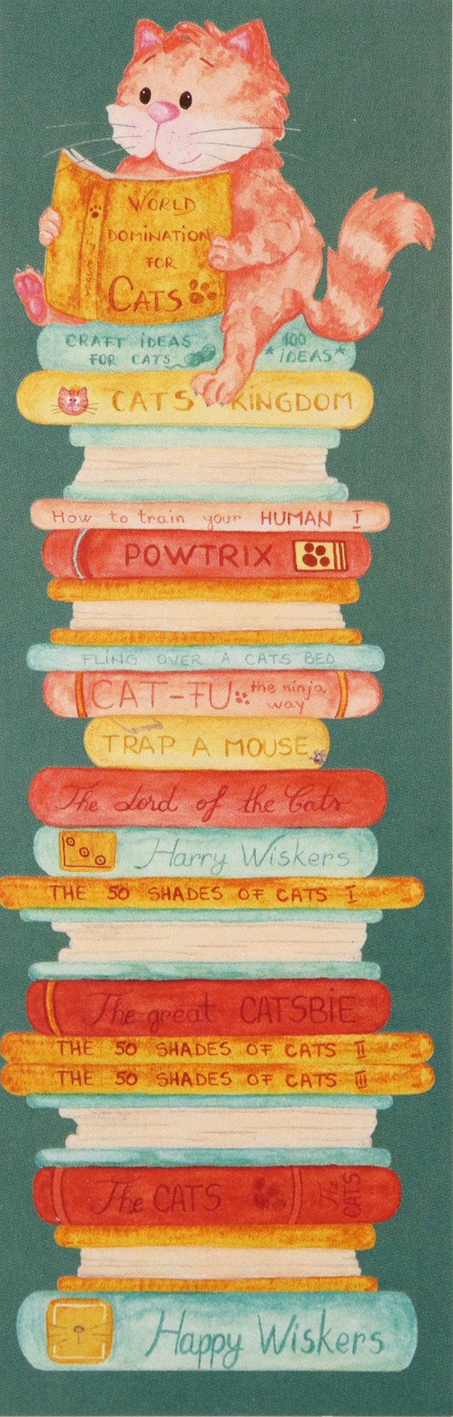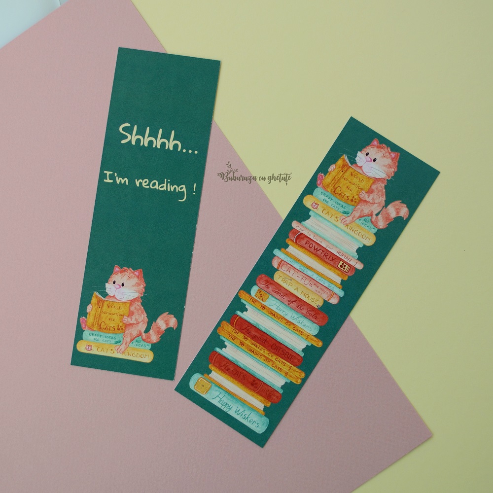 Semn de carte realizat dupa ilustratie originala in acuarela "50 shades of cats", imprimat pe ambele parti. Semnul este realizat din carton 300g lucios.