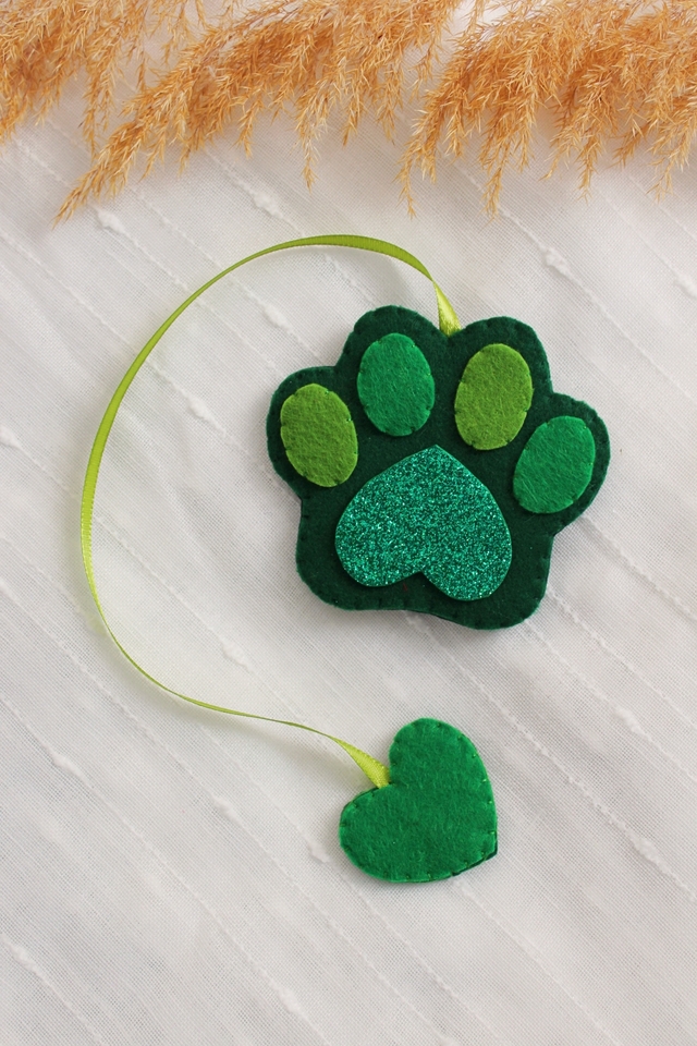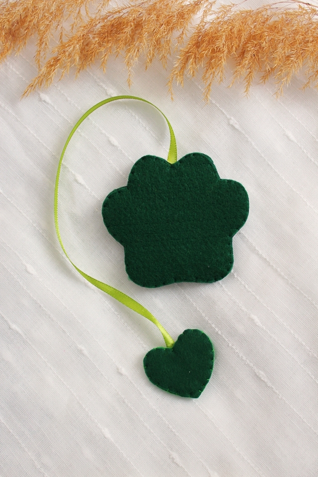 Semnul de carte este cusut manual din fetru, fiecare piesă fiind unică.