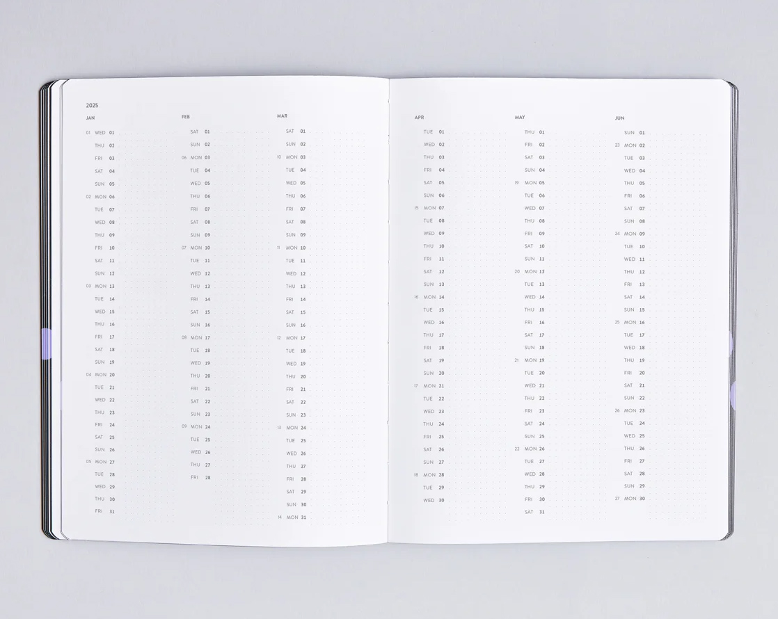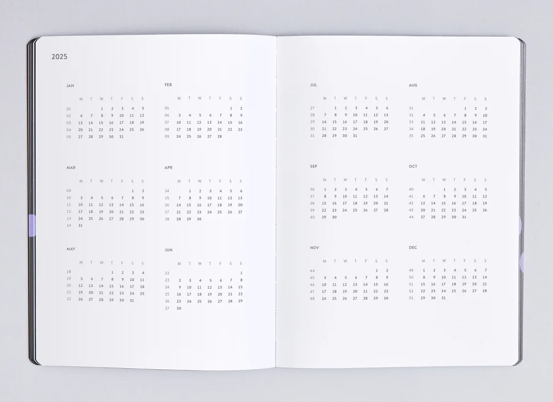 2025 va fi anul tău! Și chiar dacă nu va fi – cu acest jurnal săptămânal, nimic nu poate merge prea rău. Până la urmă, cu o pagină dublă pe săptămână, ai o privire de ansamblu absolută asupra proiectelor și programărilor tale. În plus: un planificator de proiecte, o revizuire anuală, acele sărbători internaționale importante și mult spațiu pentru recomandările prietenilor, listele de sarcini, lista ta de dorințe și contactele importante. Copertă realizată din piele reciclată netedă, cu imprimeu de calitate, inclusiv semn de carte tip panglică. Orice ar aduce 2025 – ești pregătit!