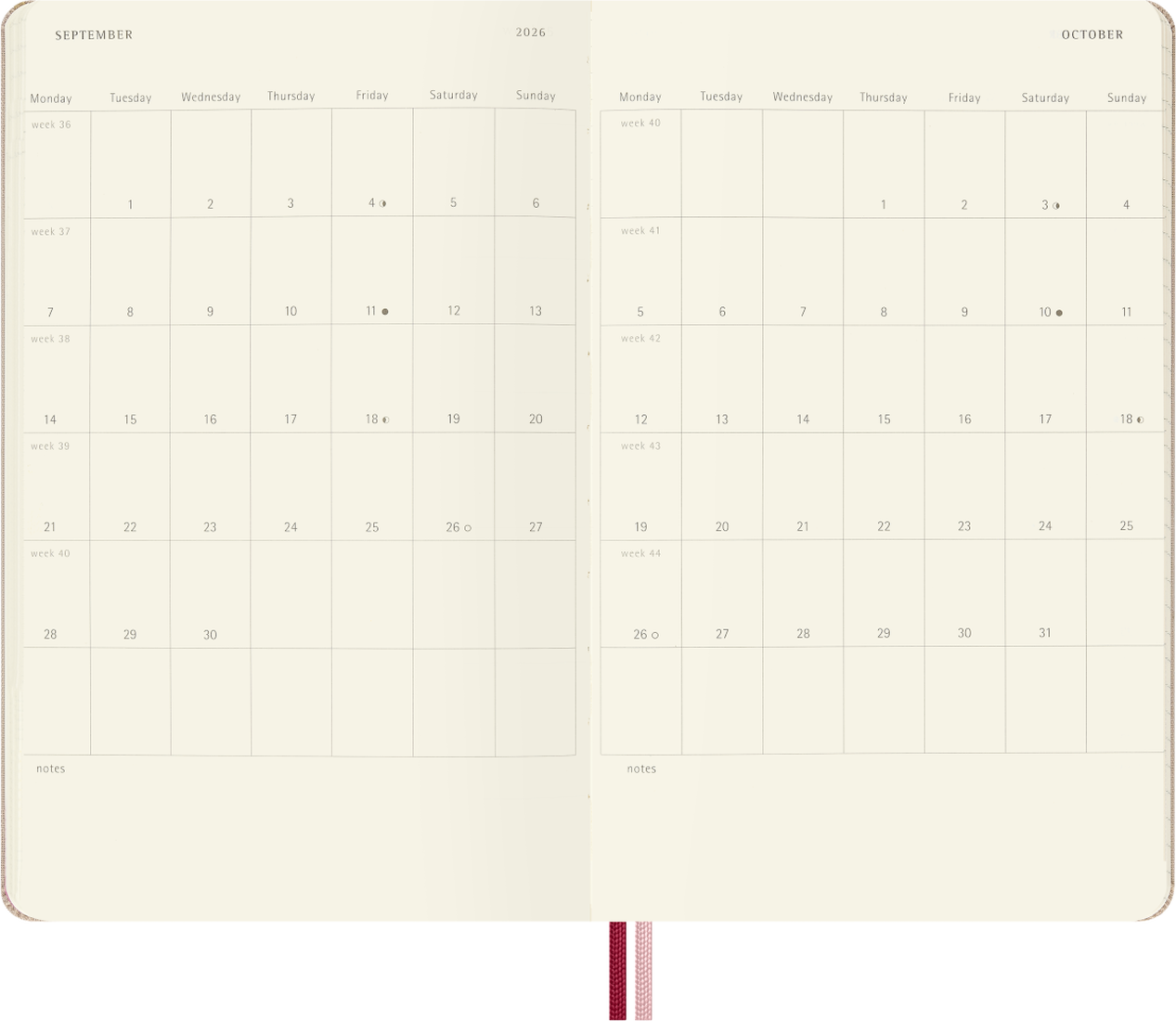- Rounded corners, elastic closure and matching ribbon bookmarks