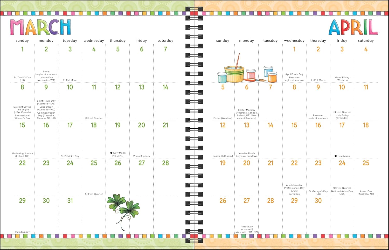 - Full-color artwork on each weekly spread