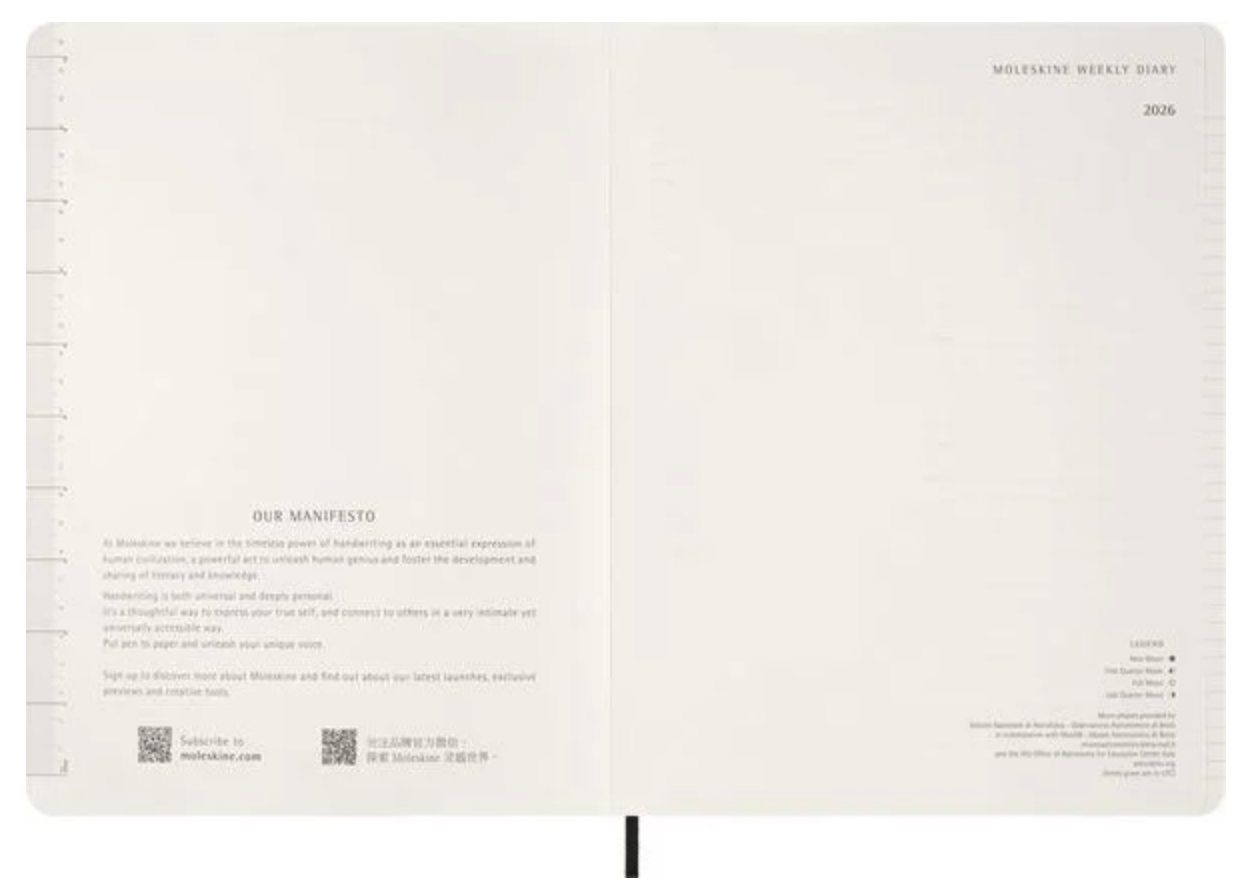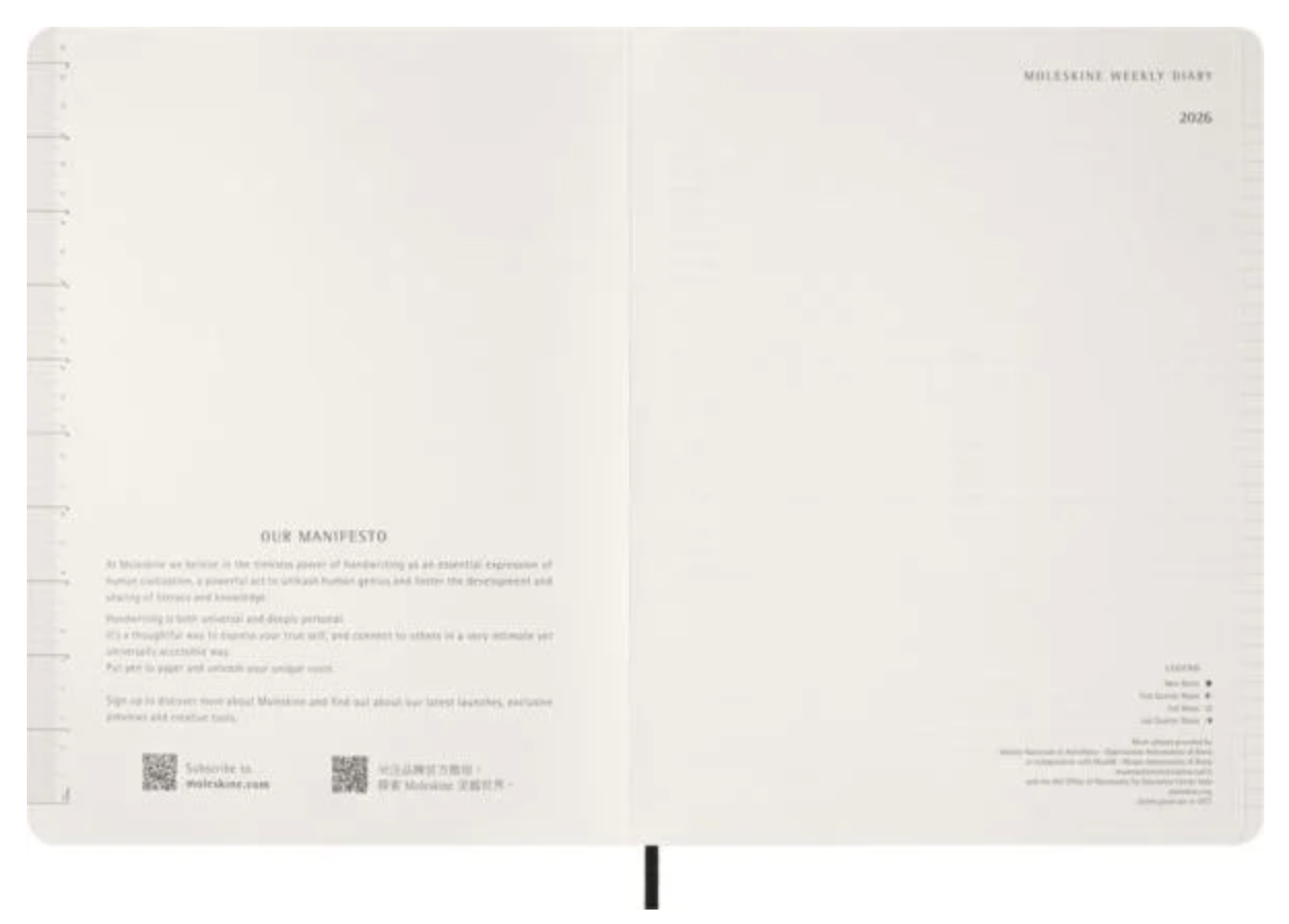 • Agenda 2026 Moleskine 13-Month Essential Weekly - XXL, Softcover (Black)