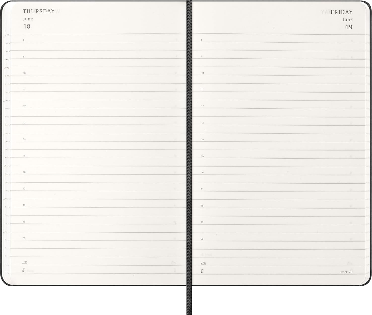 - ICONIC DESIGN: The planner features rounded corners, an elastic closure, a ribbon bookmark, and the "in case of loss" notice on the front page. Ivory-colored acid-free paper, 70 g/m²