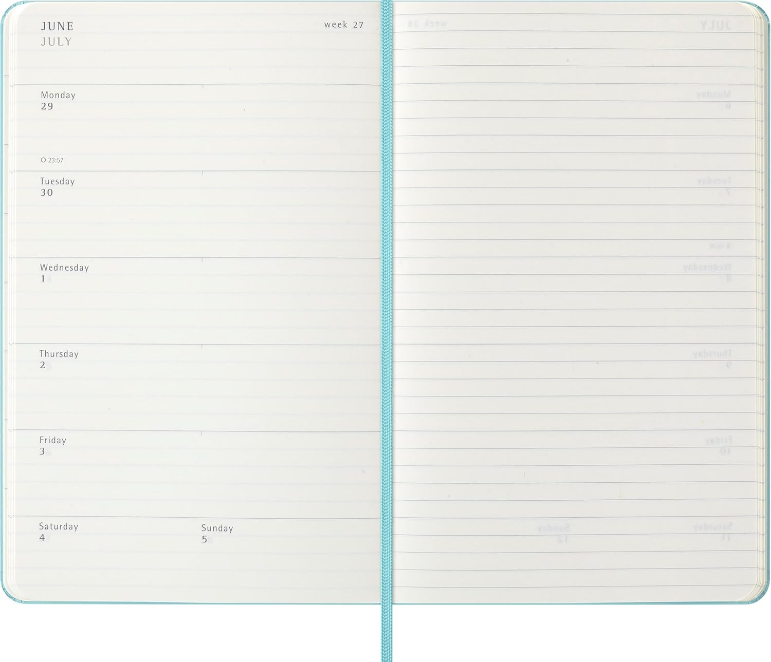 - ICONIC DESIGN: The planner features rounded corners, an elastic closure, a ribbon bookmark, and the "in case of loss" notice on the front page. 70 g/m² ivory-colored acid-free paper