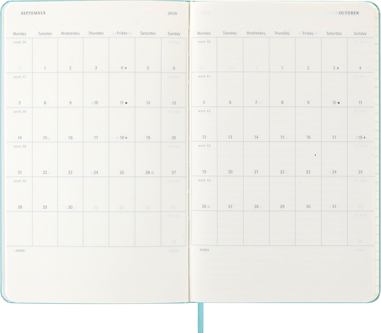 Agenda 2026 - Moleskine Classic 12 Months Weekly Planner - Hardcover, Large (Aquamarine)