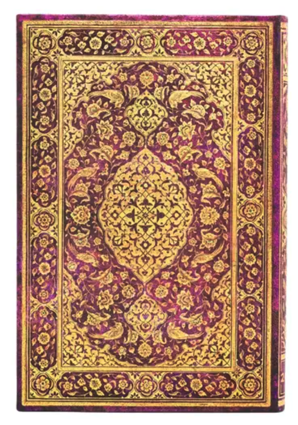 This design is inspired by a 17th-century binding that originally housed the Bustan (known in English as The Orchard) by Persian poet Saadi. Written entirely in verse, the stories are rich in moral thought. The intricate botanical patterns of this design beautifully reflect the fruits of Saadi’s wisdom.