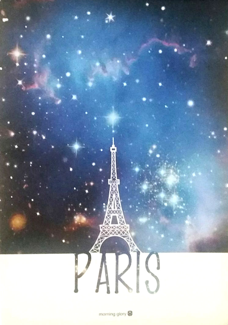 Carnetelul Blue Paris dictando propune un design cu stele si galaxii de-a lungul Universului, dar si cu simbolul Orasului Luminilor.