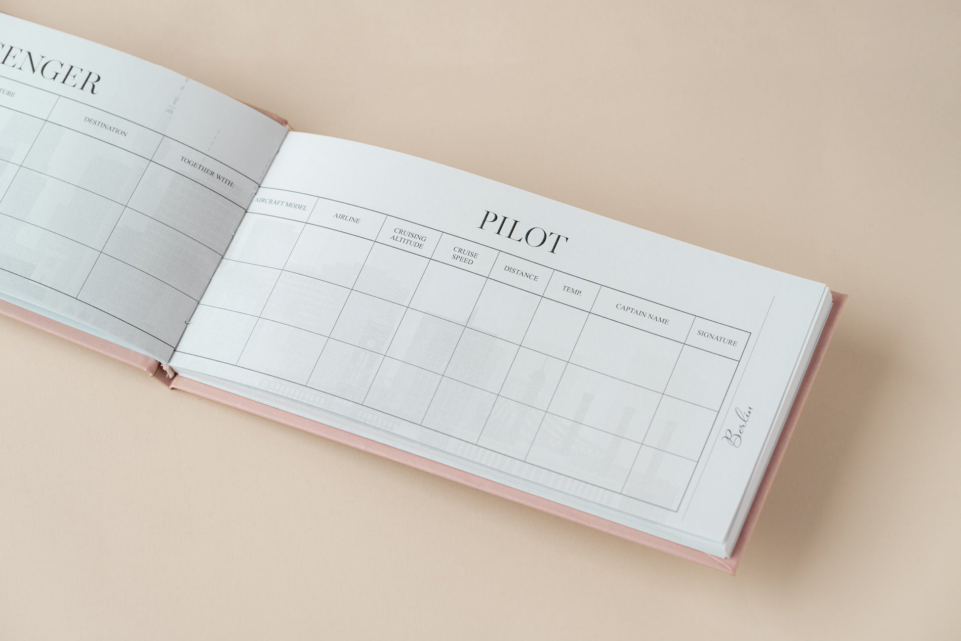 De la emoționantul prim zbor până la vacanțele de vară, acest jurnal de zbor vă oferă spațiu pentru a documenta și lista toate momentele voastre împreună.