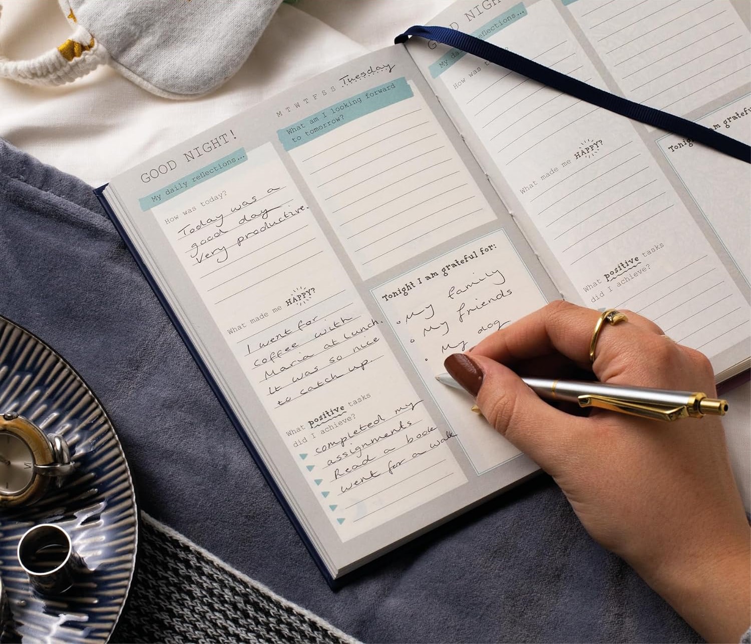 Un jurnal 2 în 1 cu două secțiuni și coperți diferite pentru cei care doresc să înceapă și să termine ziua într-un mod inspirat... Dați startul zilei cu motivațiile de dimineață și încheiați-o cu notițele de dinainte de culcare.