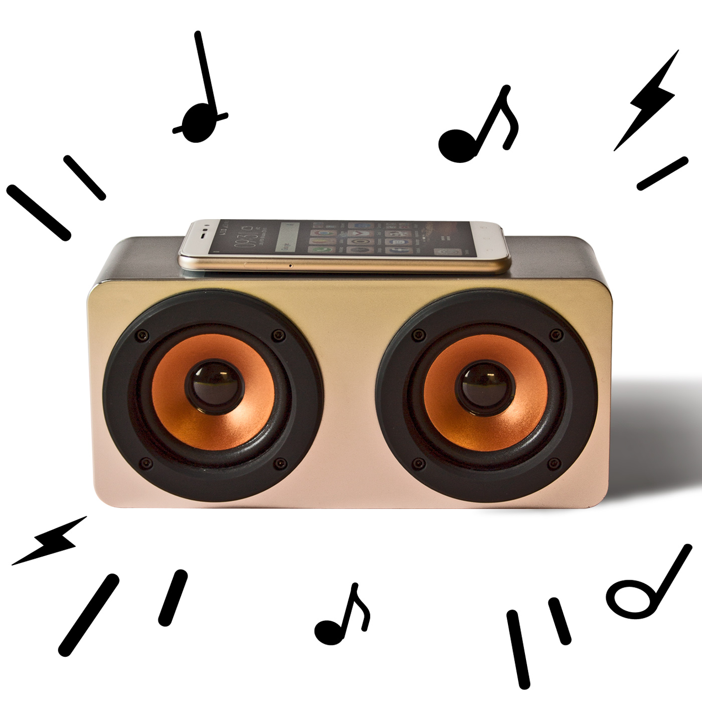 Boxa portabila cu inductie magnetica. Nu necesita conexiune wi-fi sau bluetooth, doar asezati telefonul deasupra boxei.