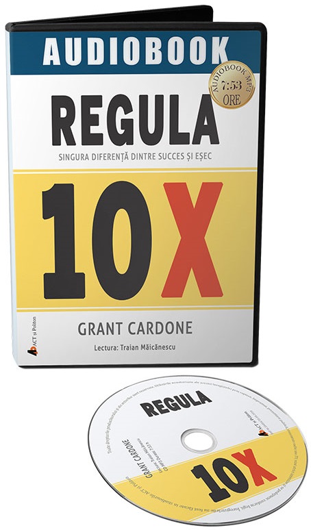 Regula 10X: Singura diferență dintre succes și eșec / The 10X Rule: The Only Difference Between Success and Failure de Grant Cardone este, după cum spune autorul, Sfântul Graal pentru toți cei care vor să cunoască succesul. Un audiobook care îți va spori curajul și încrederea în tine, va elimina tergiversările și îndoielile și te va înzestra cu un simț al scopului, care îți va anima viața, visurile și obiectivele. O audiție despre cum să-ți creezi viața pe care ți-o dorești, distrându-te mai mult și obținând mai mult timp pentru tine și ceea ce îți place să faci. Un audiobook care îți spune ce să faci ca să reușești!