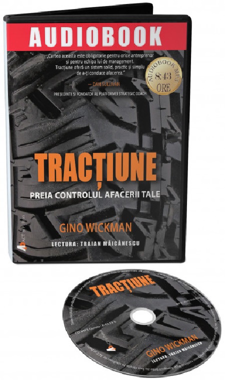 Tracțiune: Preia controlul afacerii tale / Traction: Get a Grip on Your Business de Gino Wickman este audiobookul de business care îți va dezvălui secretele consolidării afacerii tale cu ajutorul SOA. Sistemul de Operare Antreprenorial (SOA) este un sistem global și autonom, care abordează cele șase aspecte fundamentale ale unei afaceri. Tot aici vei descoperi modalități simple, dar eficiente de administrare a unei companii, care te vor ajuta să îți conduci afacerea nu doar mai bine, ci și mai relaxat.