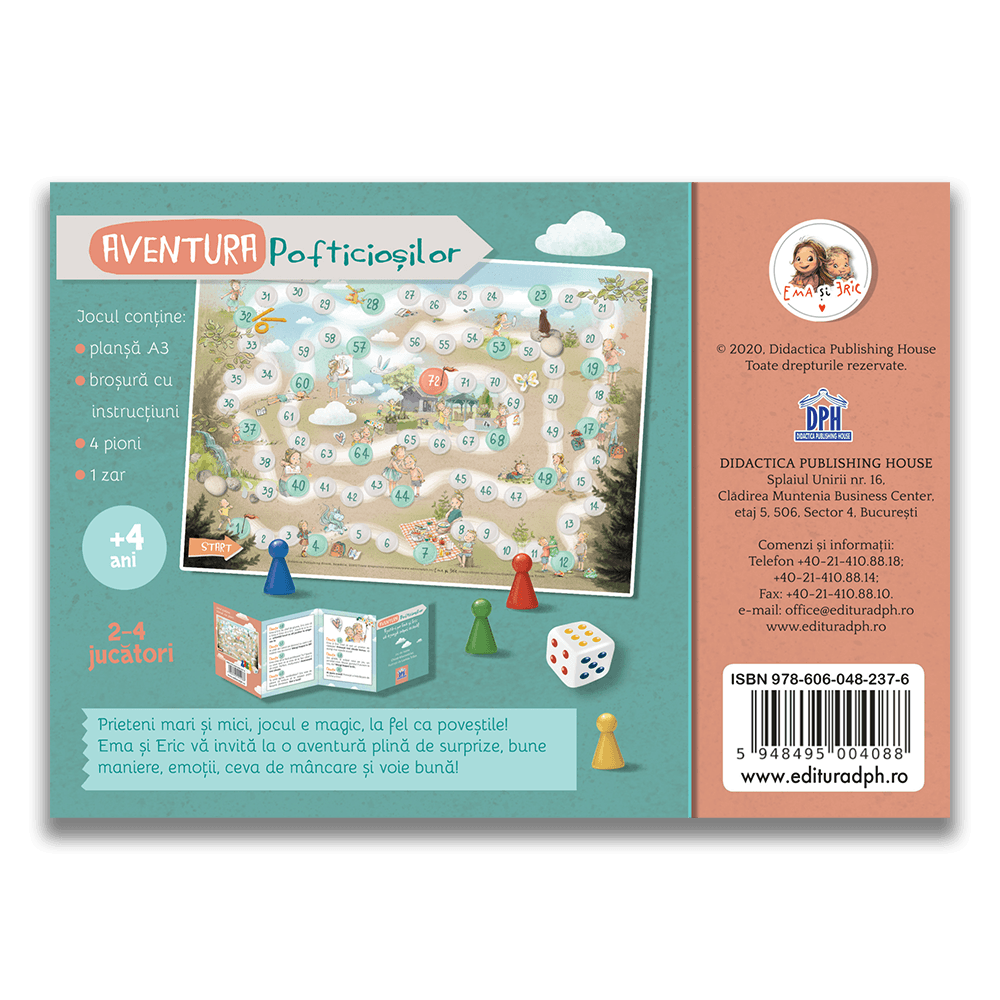 Ema și Eric invită copiii cu vârste peste 4 ani să descopere cel mai nou joc provocator și creativ apărut la Didactica Publishing House, Aventura Pofticioșilor.