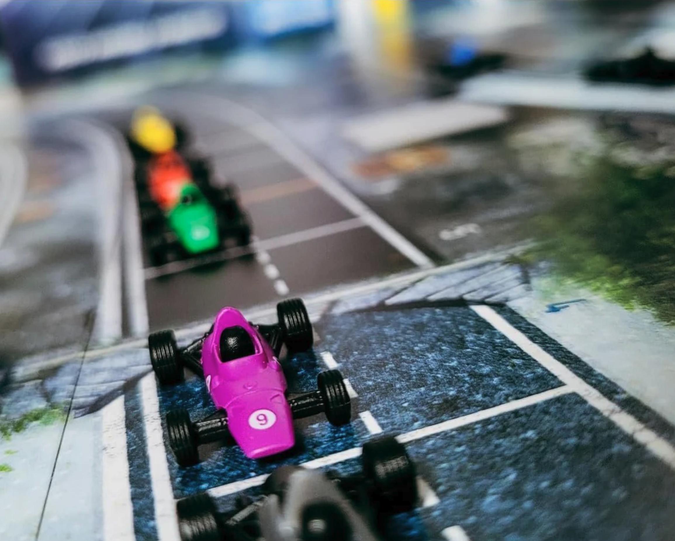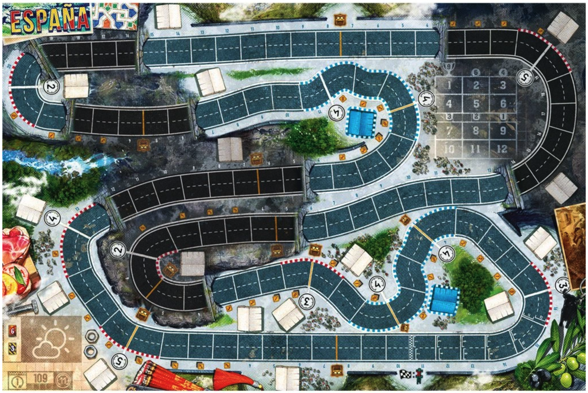 - 1 mașină de curse suplimentară cu tablă de bord și pioni corespunzători.