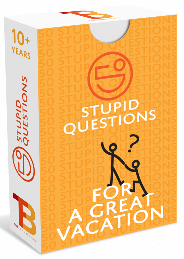 Are dimensiunea unui pachet de cărți de joc și conține 50 de întrebări stupide și foarte simpatice care vă vor face să râdeți când le veți auzi și apoi să râdeți și mai tare când veți auzi răspunsurile la ele. A fost gândit pentru a putea fi transportat cu ușurință în geanta de plajă sau în rucsacul de munte sau de plimbare printr-un city break, pentru momente distractive alături de familie și de prieteni.