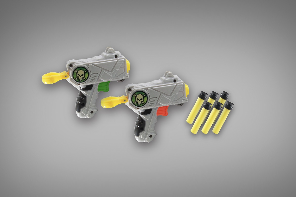 Jocul contine un suport pentru tinte, 6 sageti din spuma moale, 5 mingi din polistiren, 2 pistoale si instructiuni in limba romana.