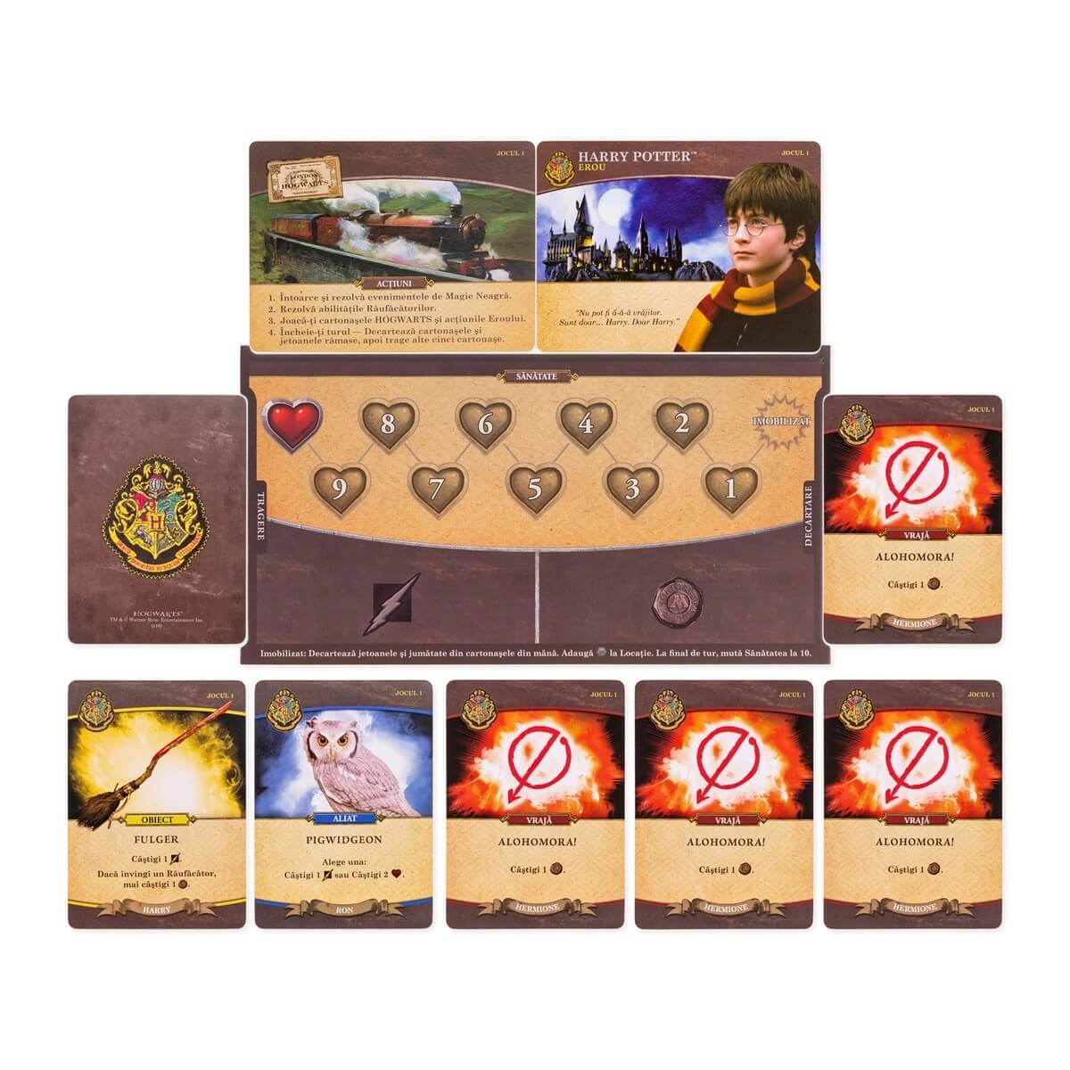 - Sa utilizeze cartonasele Hogwarts din mana sa (Aliati, Obiecte magice si Vraji) si sa activeze abilitatile Eroului interpretat.