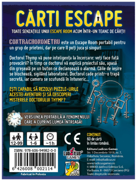 Jocul Contracronometru este un Escape Room portabil pentru un grup de prieteni, dar pe care il poti juca si singur!