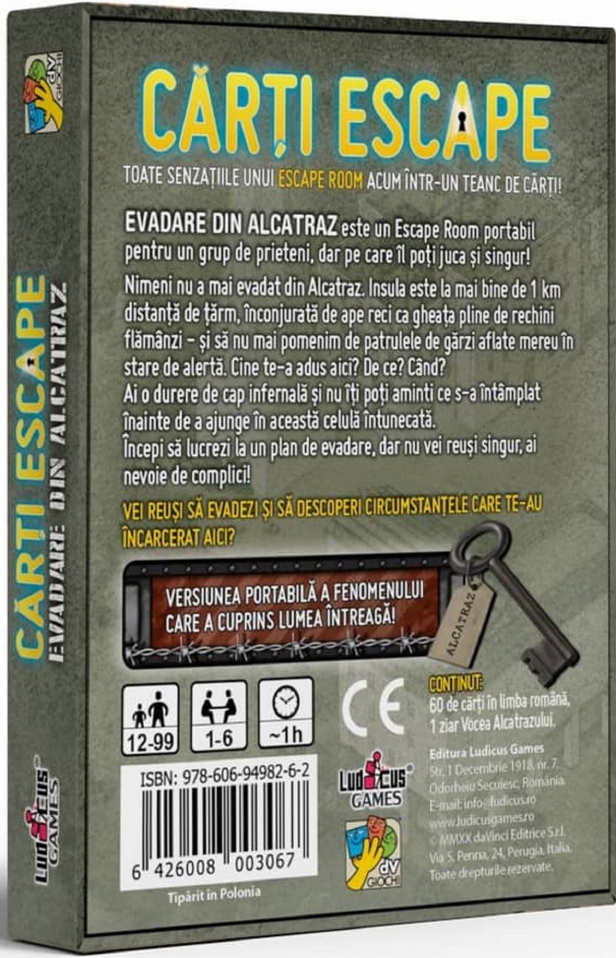 Carti Escape: Evadare din Alcatraz este un Escape Room portabil pentru un grup de prieteni, dar pe care il poti juca si singur!
