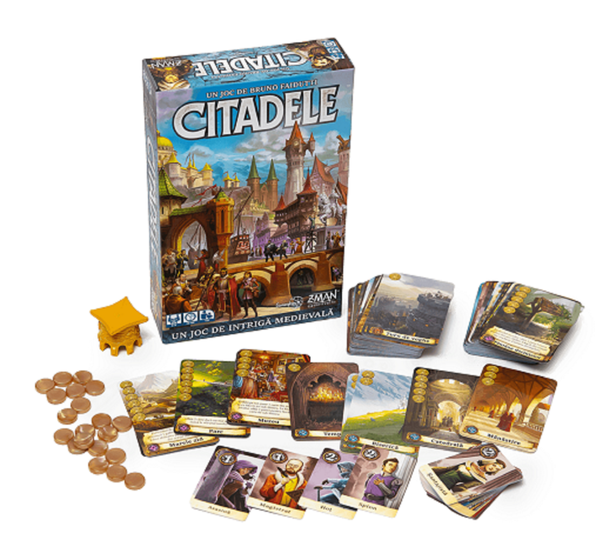 Citadele este un joc de cărți în care tu și adversarii tăi te lupți pentru a construi cel mai magnific oraș medieval. Proiectat de Bruno Faidutti și publicat pentru prima dată în 2000, Citadele a devenit unul dintre cele mai populare și mai grozave jocuri ale erei moderne. Se mândrește cu un cadru mecanic complet accesibil, care este ușor de învățat, dar bogat în înșelăciune, strategie și intrigi.