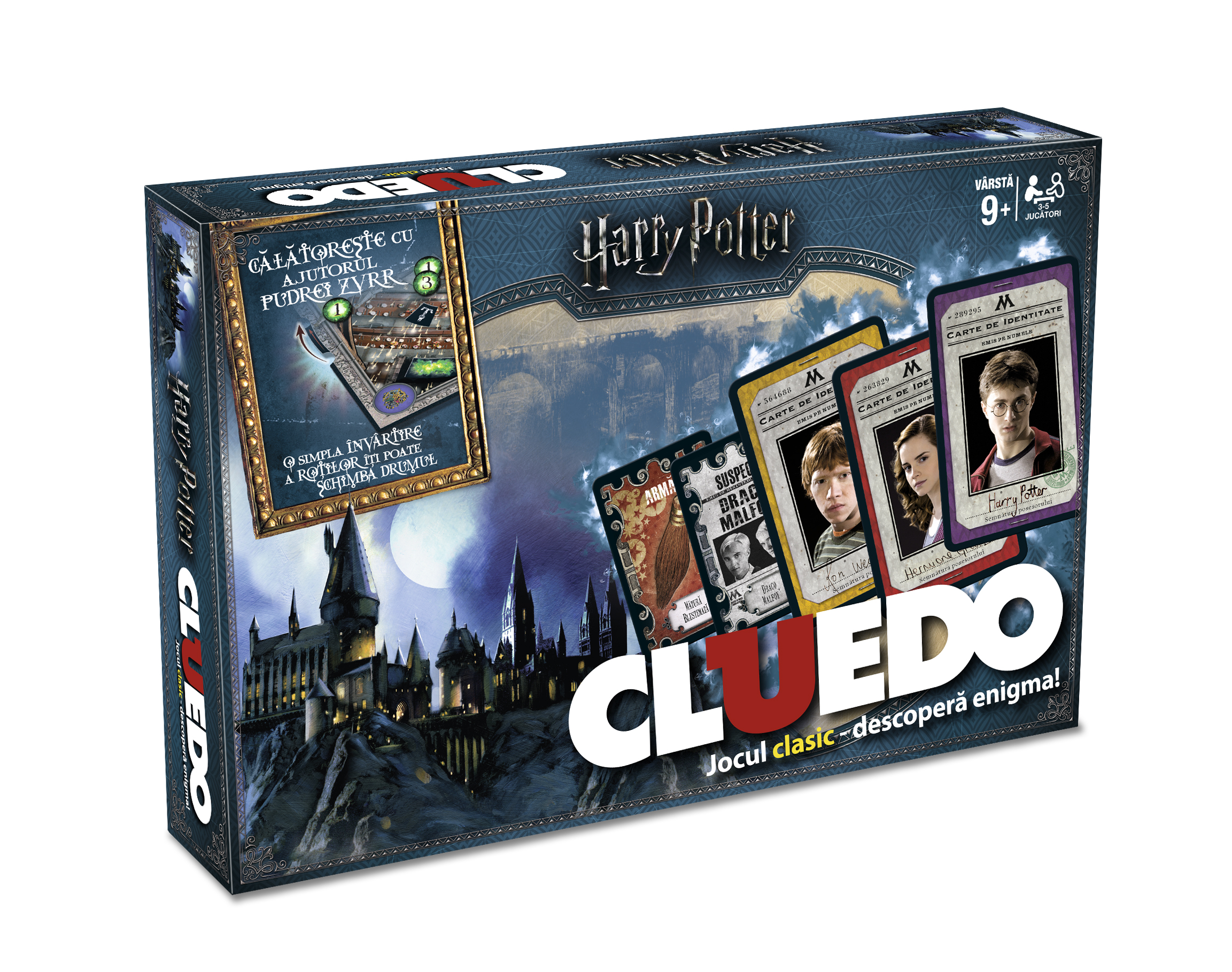 Cluedo Harry Potter este un joc de societate care te provoaca sa descoperi misterul unei disparitii, afland raspunsurile la intrebarile CINE? UNDE? si CU CE?, ca un adevarat detectiv. Cluedo poate fi jucat de minim 3, maxim 5 jucatori.
