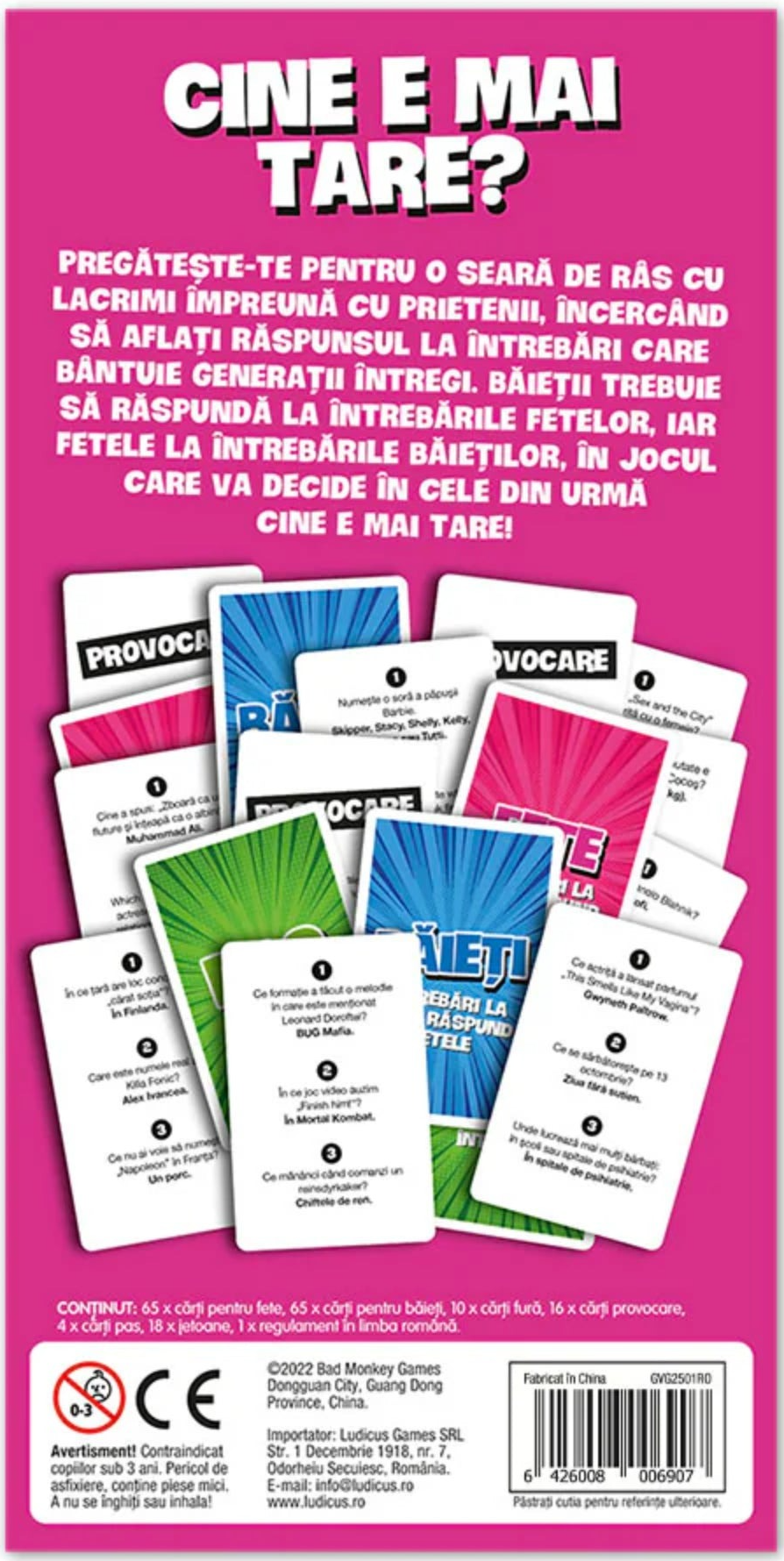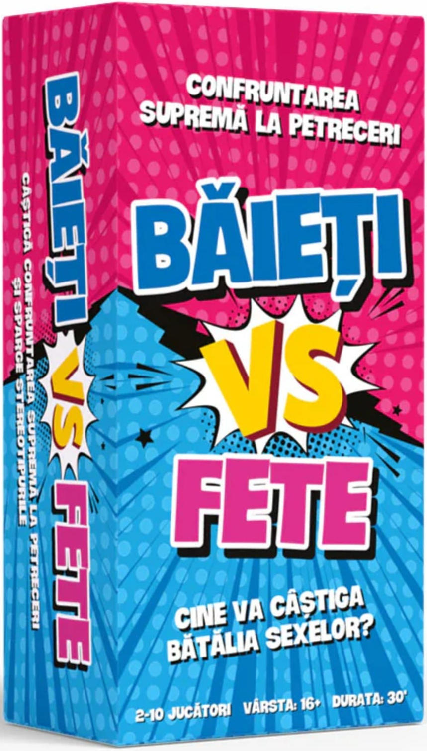 Ideal pentru petreceri, reuniuni spontane sau seri tematice, Băieți vs. Fete stimulează interacțiunea, spiritul competitiv și buna dispoziție. Adaugă-l în colecția ta și transformă orice seară obișnuită într-un duel distractiv între echipe!