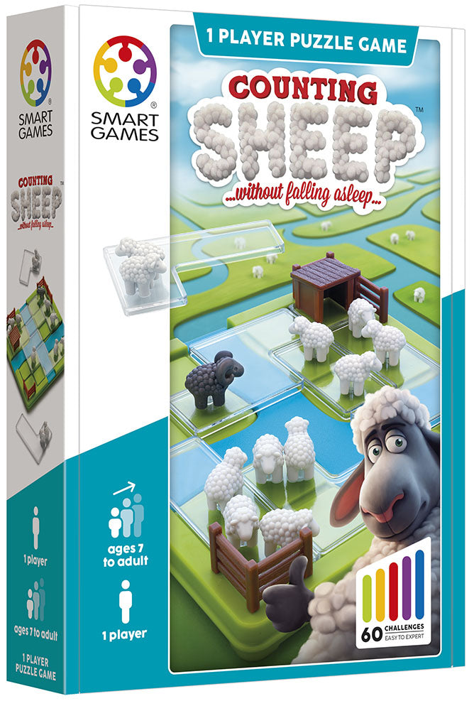Counting Sheep este un joc de logica cu provocari tip puzzle, din seria Smart Games, de inalta calitate, cu un design incantator si 60 de provocari logice cu dificultati crescatoare, recomandat pentru varstele 7+, care testeaza si dezvolta abilitatile cognitive ale jucatorilor.