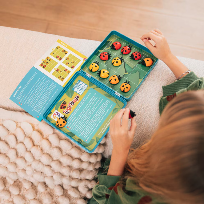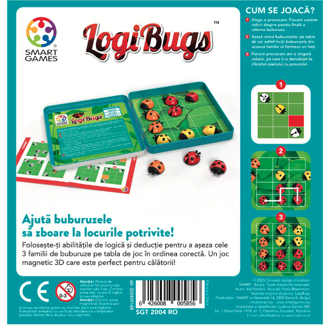 Logibugs este joc de calatorie distractiv si captivant, din seria Smart Games, de inalta calitate, care vine intr-o cutie metalica robusta si 48 de provocari logice cu dificultati crescatoare, recomandat pentru varstele 6+, care testeaza si dezvolta abilitatile cognitive ale jucatorilor.