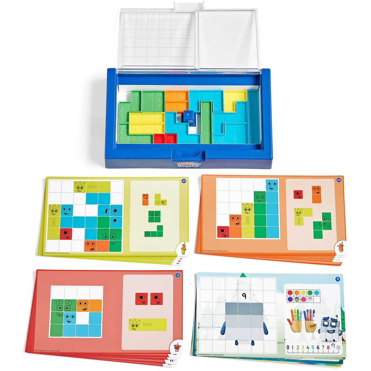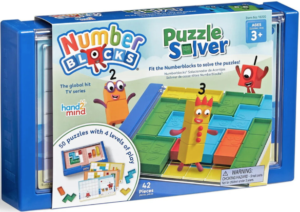 - setul include personajele Numberblocks de la unu la cinci, fiecare reprezentat prin piese tactile care pot fi rasucite, intoarse si asezate pentru a rezolva puzzle-urile