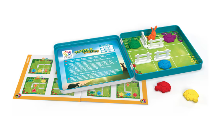 Turtle Tactics este joc de calatorie distractiv si captivant, din seria Smart Games, de inalta calitate, care vine intr-o cutie metalica robusta si 48 de provocari logice cu dificultati crescatoare, recomandat pentru varstele 5+, care testeaza si dezvolta abilitatile cognitive ale jucatorilor.