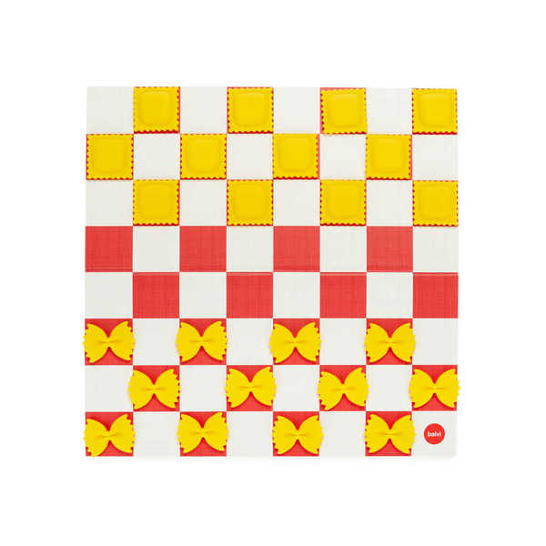 • ORIGINAL. Jocul clasic de dame, acum cu o notă italiană. Piesele au formă de paste, iar tabla are un design cu o față de masă în carouri roșii și albe, evocând o adevărată atmosferă italiană.