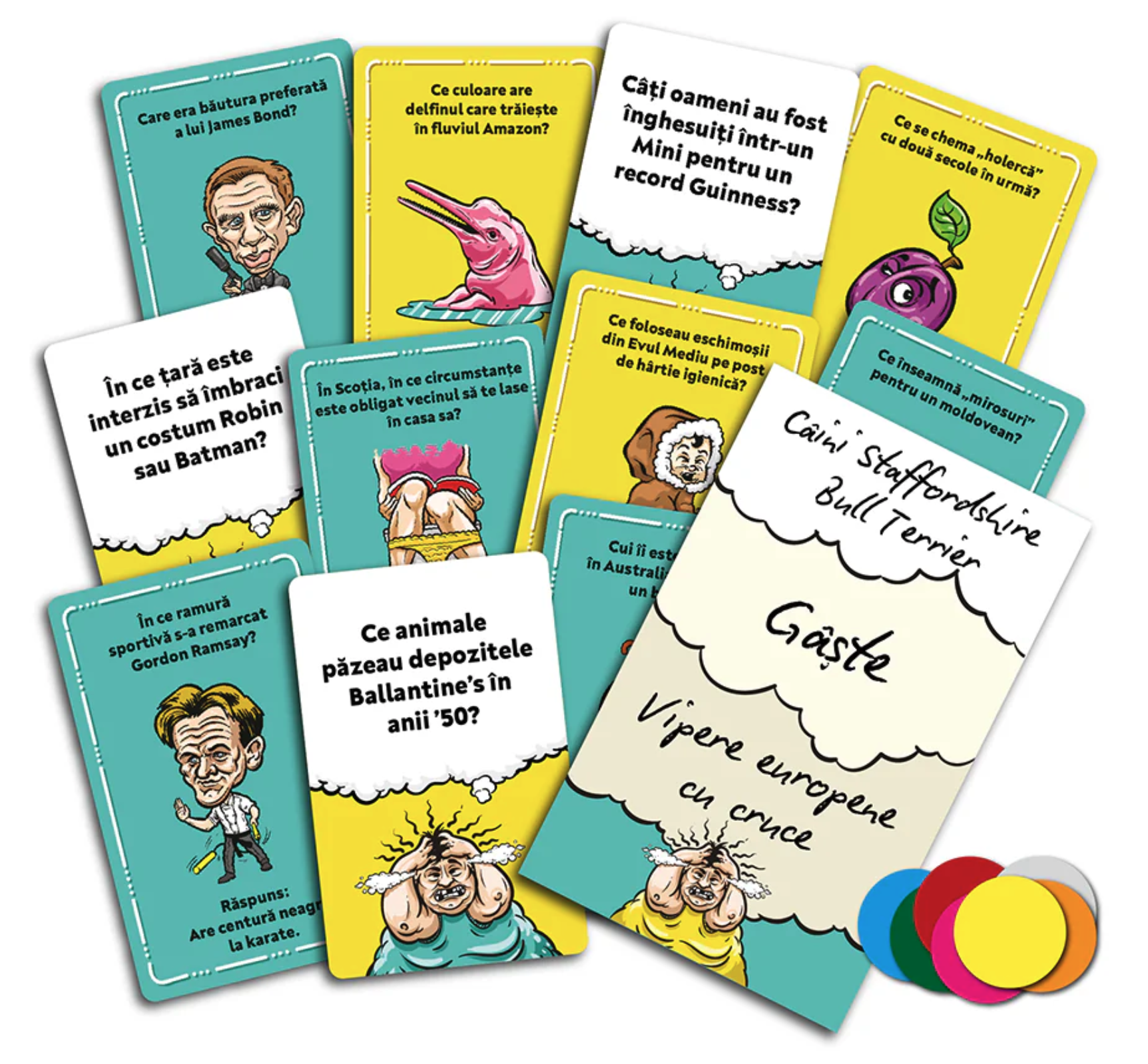 In tura ta, devii un maestru al confuziei: tragi o carte, citesti o intebare - iar raspunsul corect il stii doar tu. Apoi inventezi doua raspunsuri false, dar super convingatoare, si le servesti prietenilor impreuna cu raspunsul corect.
